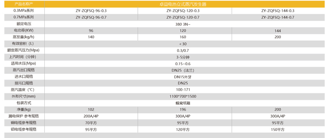 蒸汽量:140~200kg/h、電功率:96~144KW 、尺寸:1100*700*1500mm 蒸汽壓力:0.7MPa